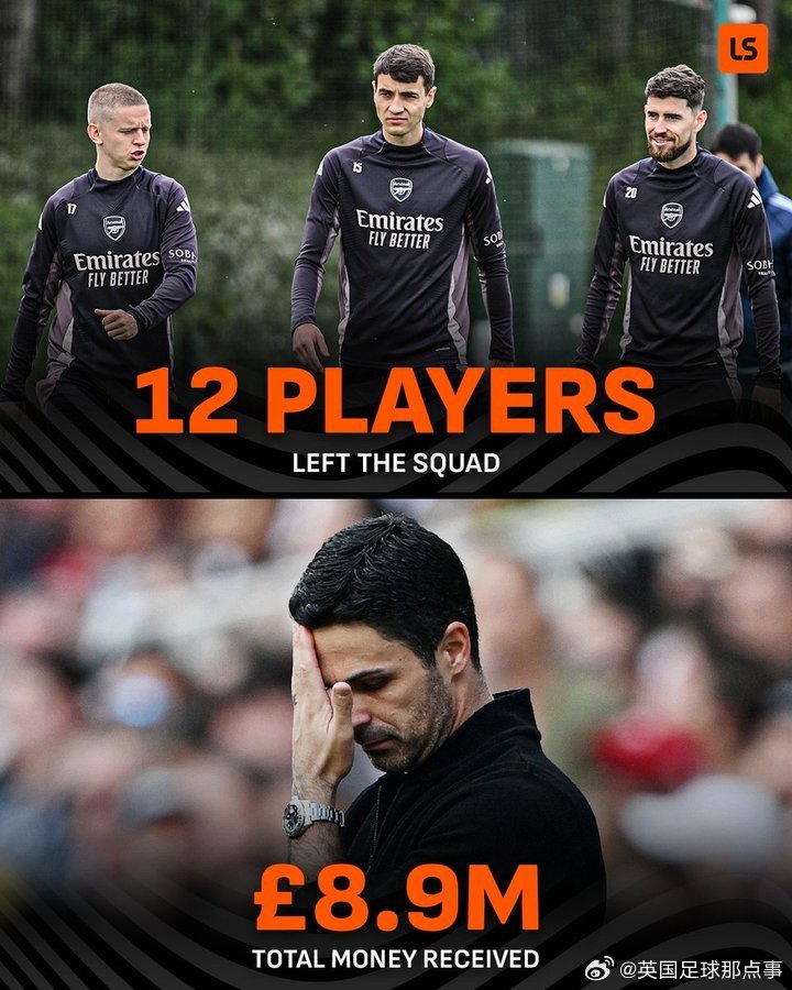 LiveScore报道:阿森纳今夏送走12名球员,转会总收入竟不足900万英镑😵‍💫